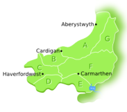 Towns Drefach-Felindre. Pub/Restaurant, Fish & Chip Shop, Spar Shop. Newcastle Emlyn - Castle (ruin), River walks, Shops, Banks & Launderette. Cenarth - Beautiful Falls Aberystwyth - University Town, Seafront & good shopping Tenby - Popular Beach Resort, trips to Caldy Island Haverfordwest - Principal Town in Pembrokeshire Carmarthen - Lively, Historic Market Town New Quay - Fishing Village, Beach and stunning Harbour Fishguard - Catch the Ferry to Ireland Cardigan - Attractive small Town on River Estuary. Local Beaches Poppit Sands, Cardigan Mwnt - Beautiful sandy Cove, spectacular views Penbryn - National Trust Beach Aberporth - Pretty Beach with Village facilities Attractions Teifi Valley Railway - Pay once ride all day Cenarth Falls National Coracle Centre - Unique collection, next to Cenarth Falls Cenarth Paintball & Laser Combat Cardigan Island Coastal Farm Park - Come and see the Dolphins Oakwood - Wales' largest Theme Park, fun for all the family St David's - Palace and Cathedral The National Botanic Garden of Wales - Aberglasney - "A garden lost in time" Dating back to the thirteenth century Sport Golf at Saron (9 hole) Canoeing - Llandysul Golf at Cardigan (18 hole) Dry Ski Slope at Llangrannog